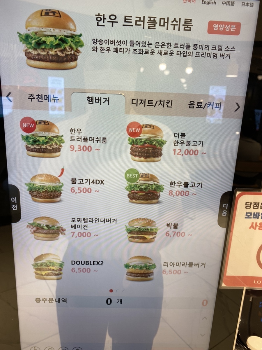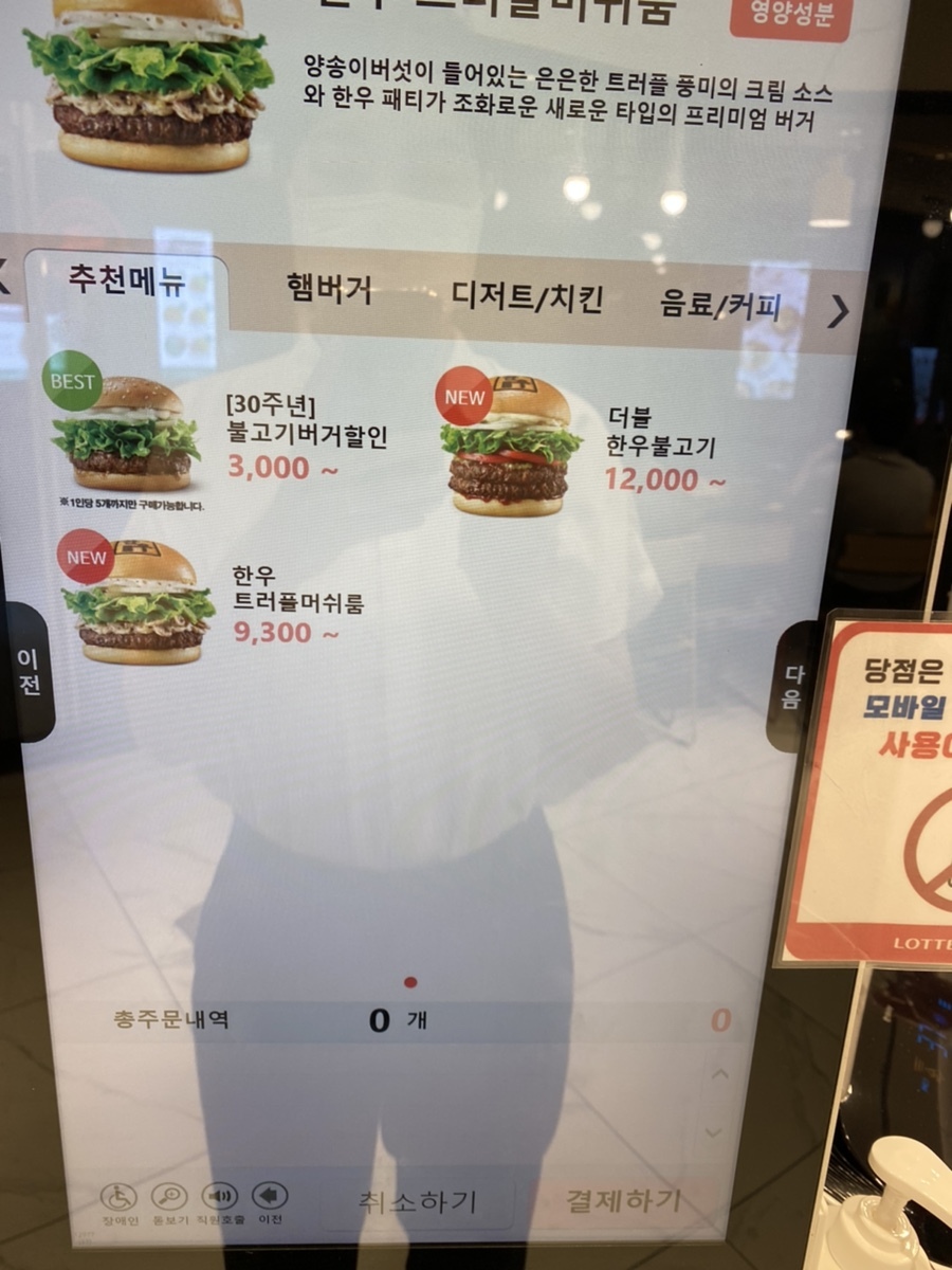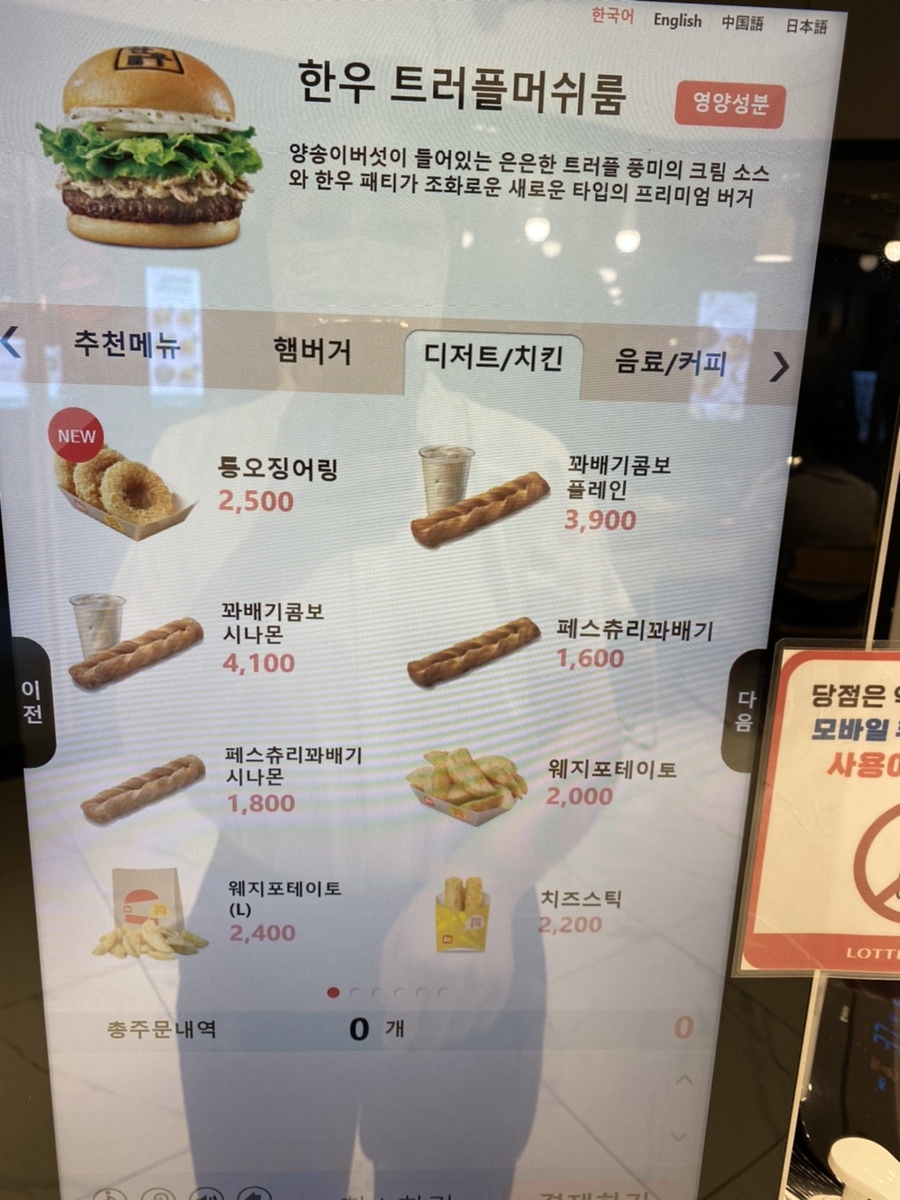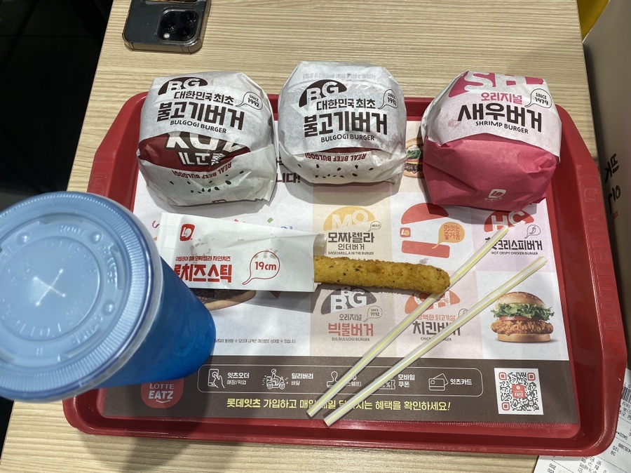 시간이 넉넉하지 않아서 간단하게 롯데리아로 결정!