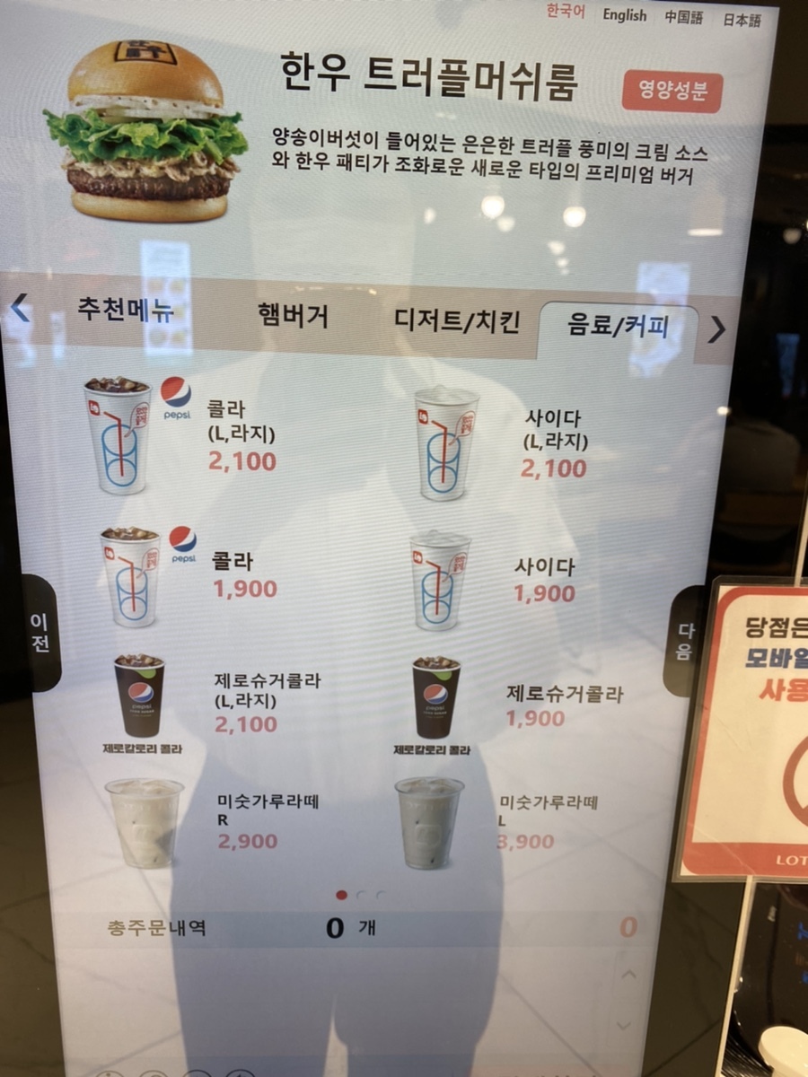 롯데리아는 펩시라서 음료는 무적권 사이다