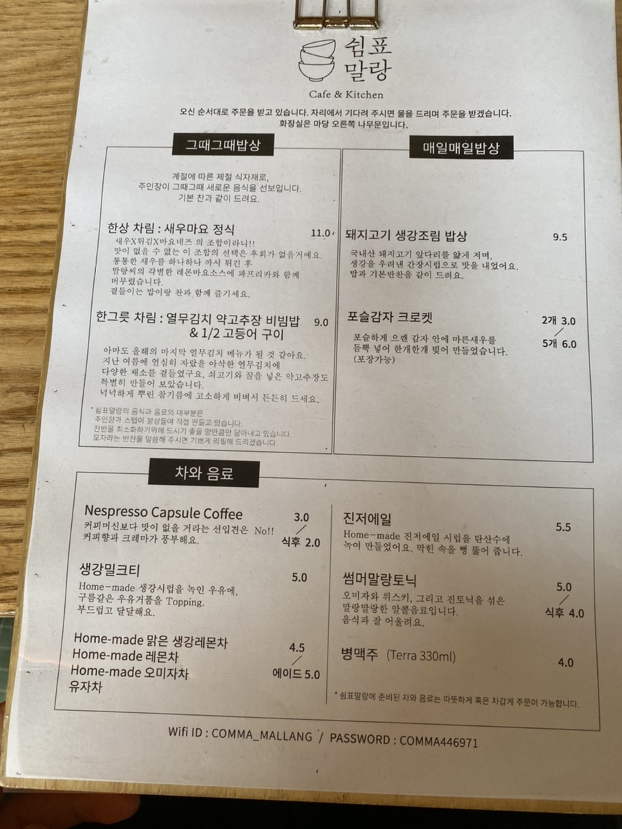 쉼표말랑은 정갈한 한상을 먹을 수 있어요!