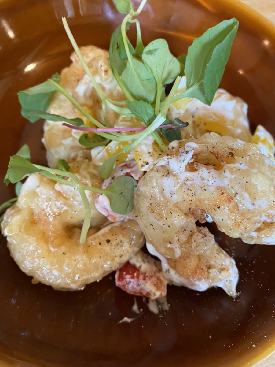 새우마요정식은 새우튀김 7개에 마요 소스 촵촵