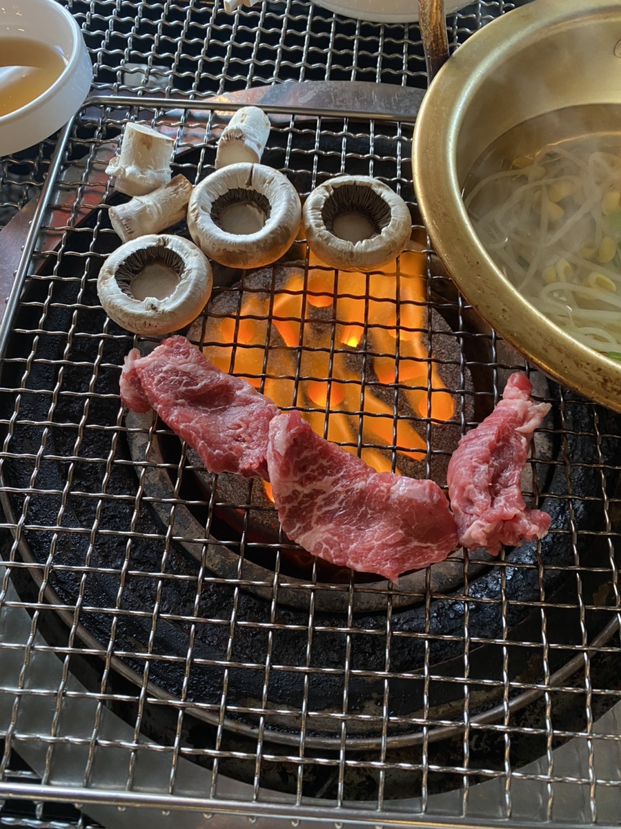 소고기는 굽고 바로 한점에 한잔을 해야죠?