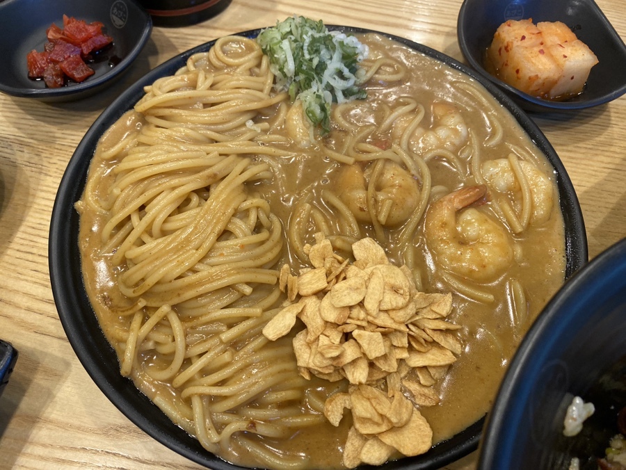 카레 한 입 먹고 기름진 가라아게로 씻어주면