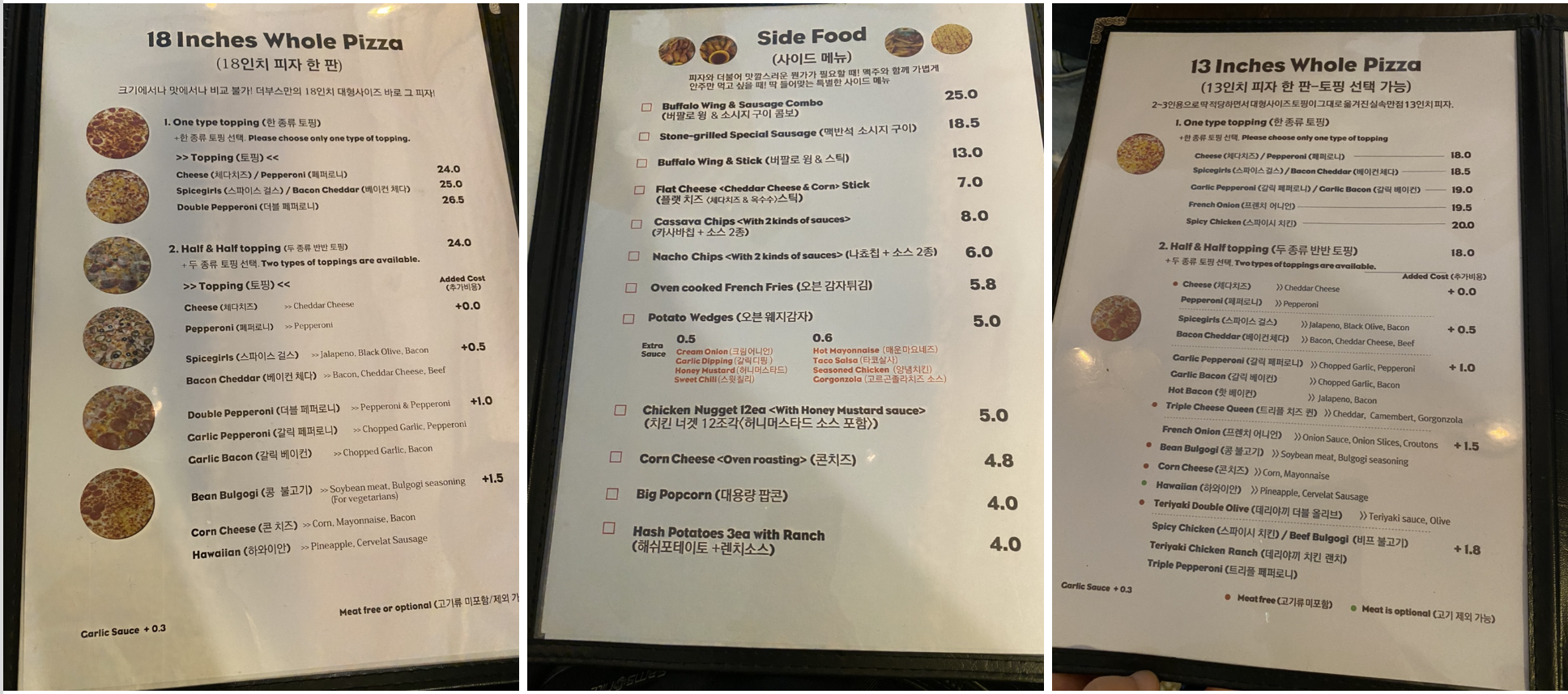 찍어온 메뉴판