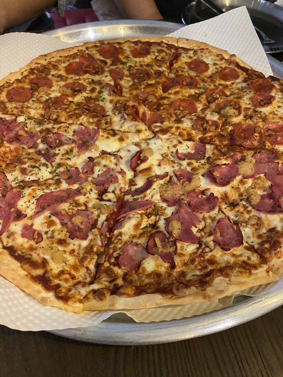 마늘과 베이컨의 조합으로 반반피자를 시키고