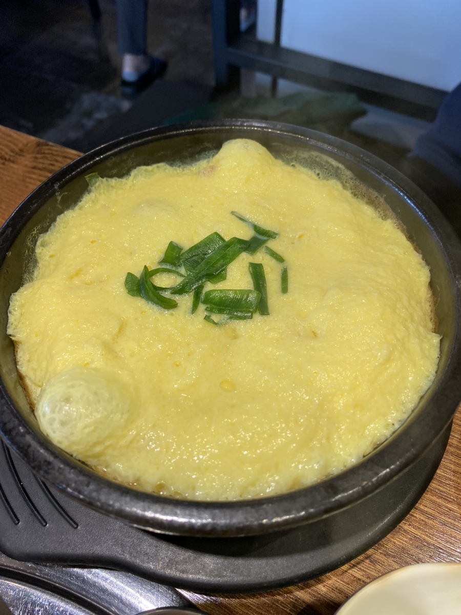 계란찜 올리고 삼겹살 올려서 뇸뇸