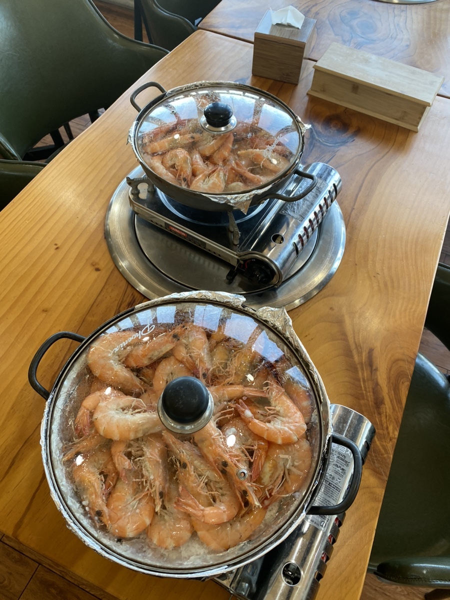 빈자리에서 새우를 굽굽해주시고