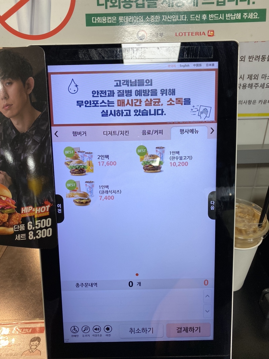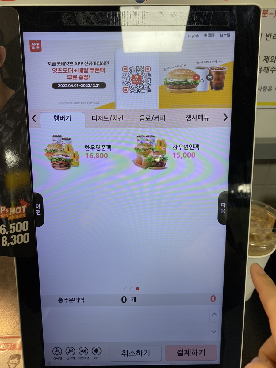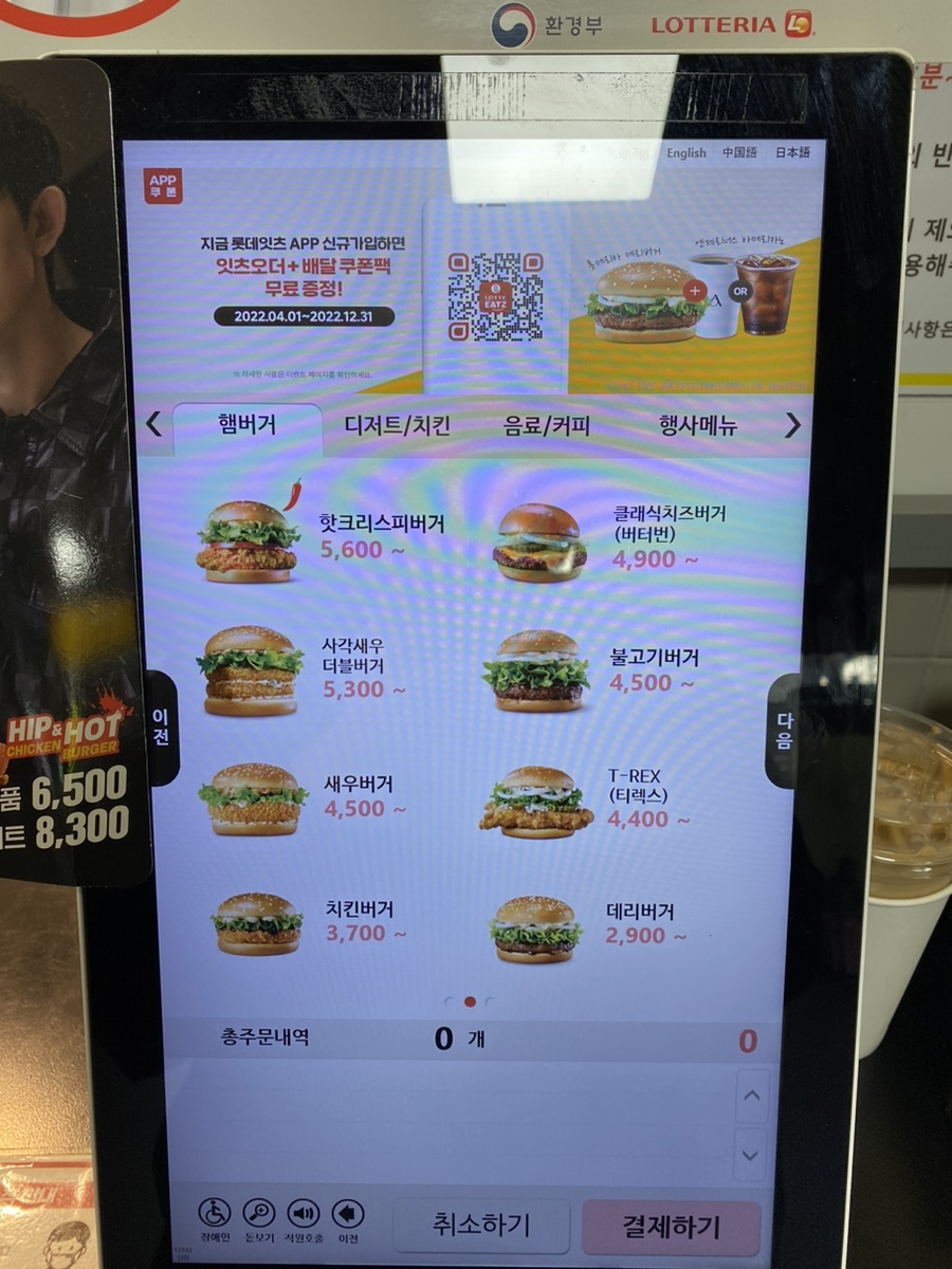 수서역 롯데리아는 키오스크로 주문이 가능해요!