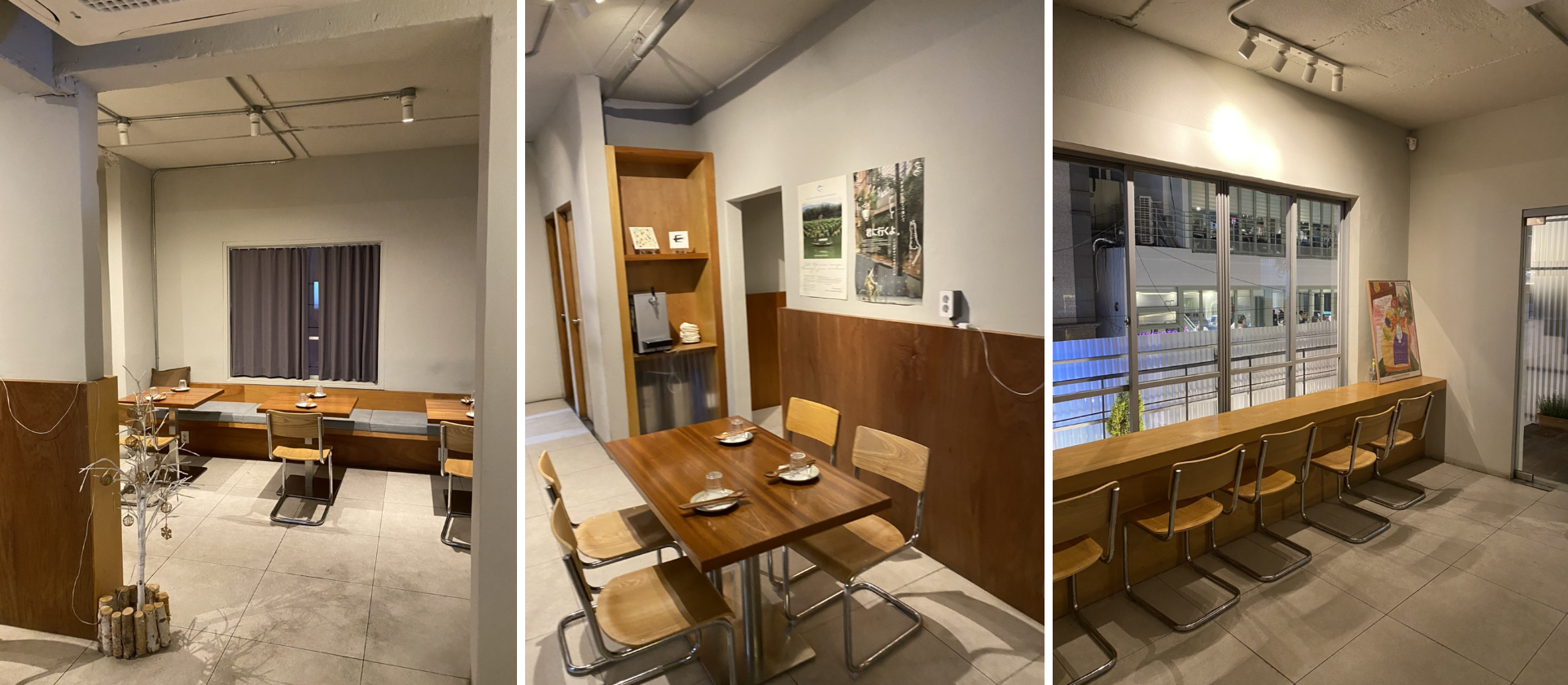 갈색 테이블이 쫙 있는데 촌스럽지 않다!!!