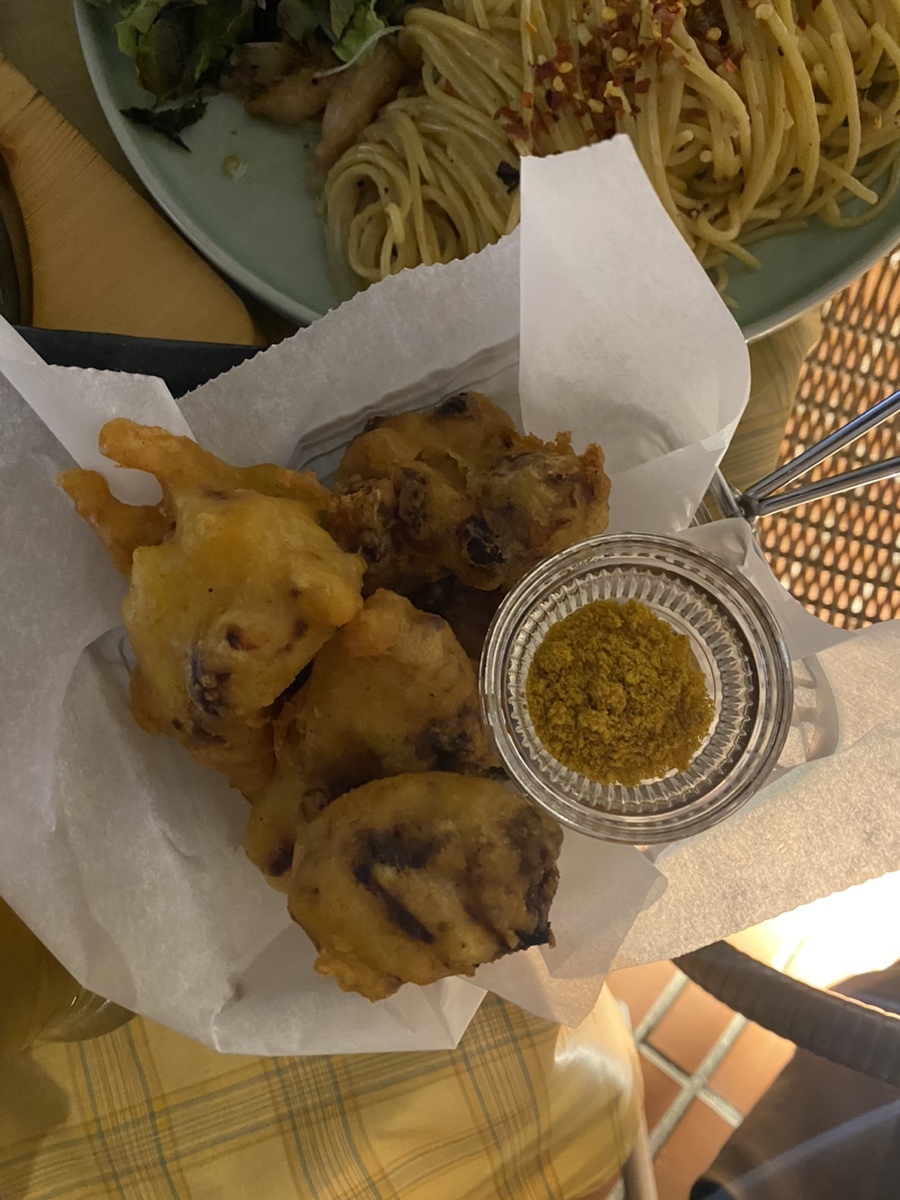 정체을 알 수 없는 튀김은 기름기가 잔뜩이라