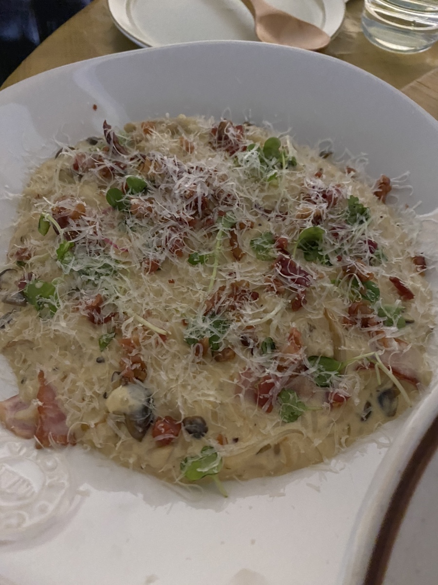 느끼할만 하면 베이컨이 씹히면서 풍미가
