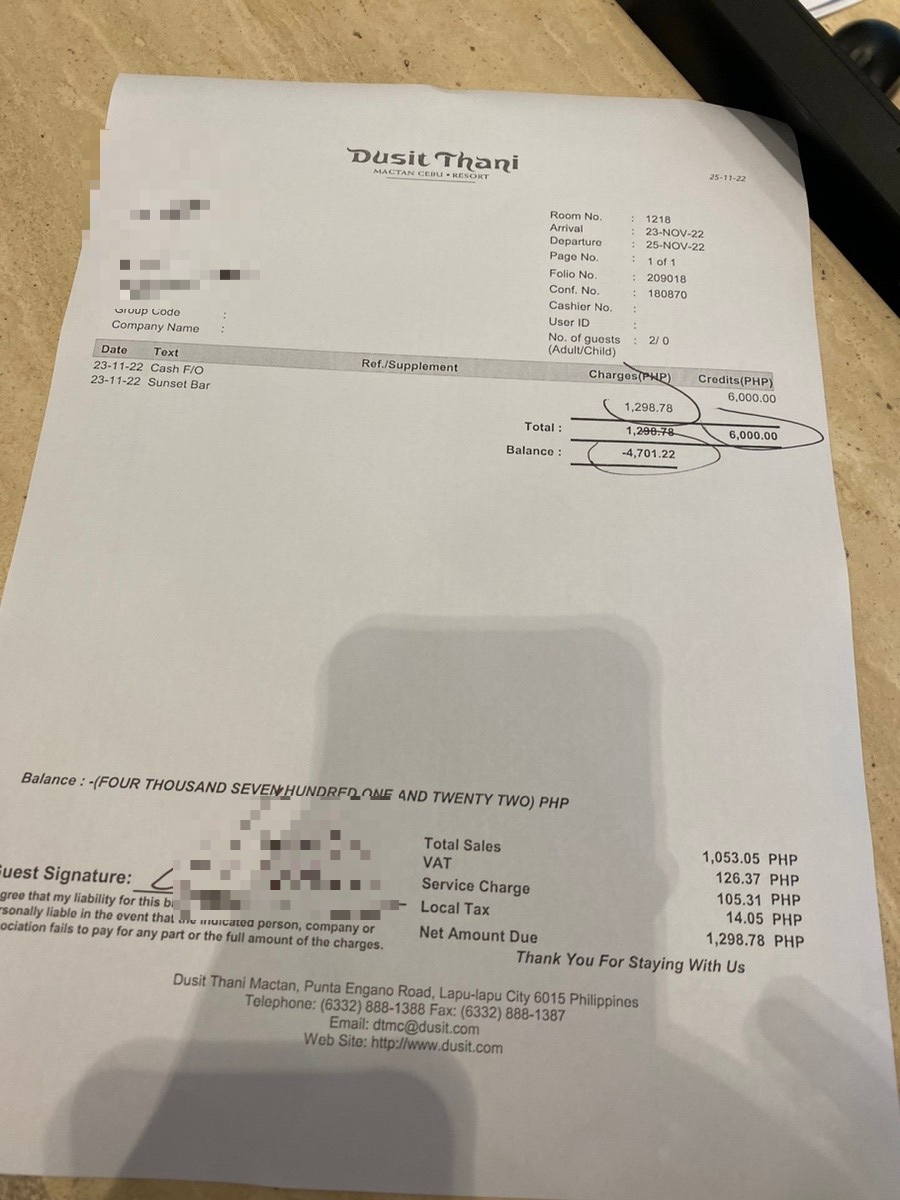 세부 두짓타니 막탄 체크아웃 시간은 오후 12시
